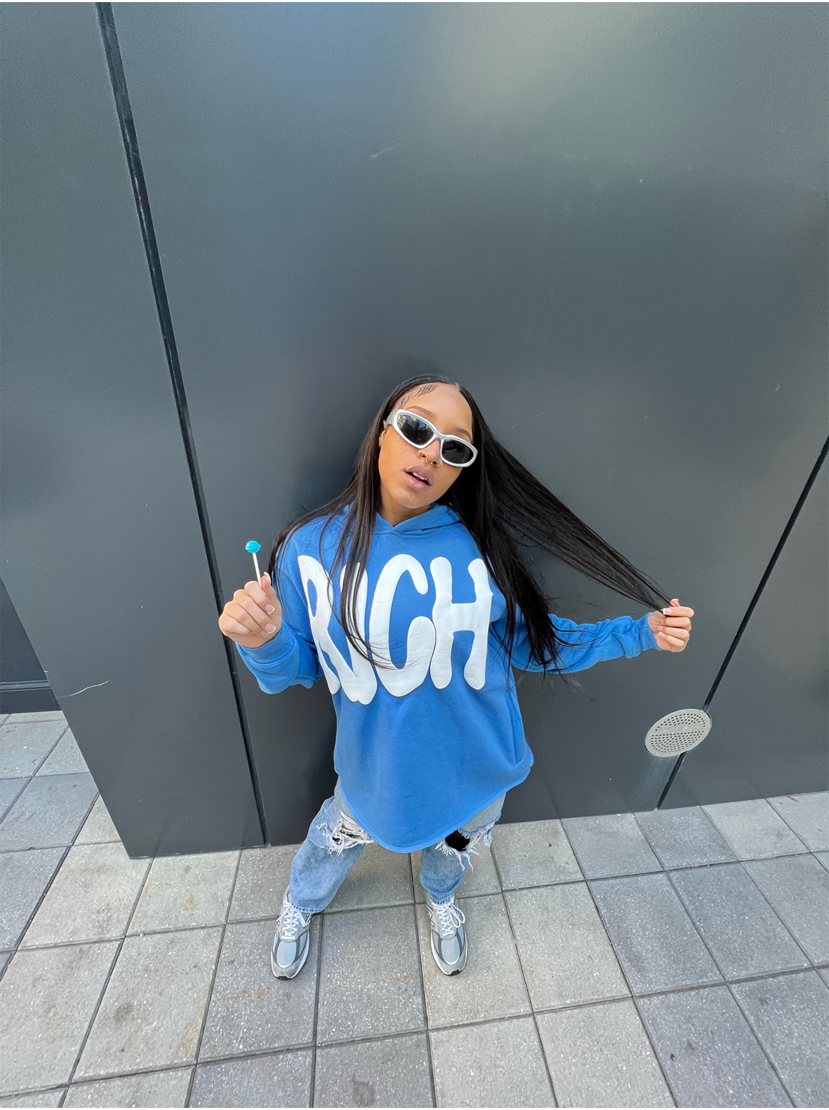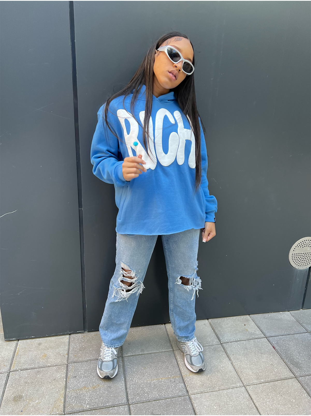 blue hoodie
