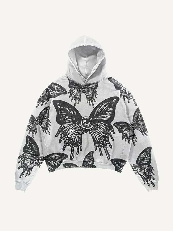 Eye Butterfly Print Slant Pockets Hoodie